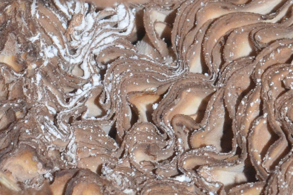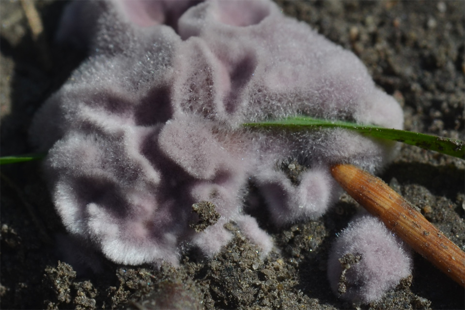 22 сентября. Барнаульский ленточный бор. Нашёл старое плодовое тело гриба-зонтика Оливье (Chlorophyllum olivieri), а когда фотографировал, заметил на нём какую-то зернистую белую плесень. Ожидается загрузка фотографий с помощью JavaScript... Ниже фрагмент фотографии "Плесень на гименофоре гриба-зонтика Оливье", масштаб 1/1: ![]() Далее я сфотографировал какой-то вероятно базидиальный гриб, микопаразит, опутавший своим мицелием плодовое тело предположительно подгруздка зеленовато-пластинчатого (Russula chloroides). Видимо, он собрался добыть из подгруздка полезные вещества, чтобы сформировать склероции. Что это за микопаразит, я пока не знаю. Ожидается загрузка фотографий с помощью JavaScript... Ниже фрагмент фотографии "Микопаразит на подгруздке зеленовато-пластинчатом 1", масштаб 1/2: ![]() Встретилась не определённая ярко-красная сыроежка с тёмной серединкой, не очень острая. Жаль, фотографию гименофора я сделал неправильно. Надо было снимать под другим углом, чтобы было хорошо видно пластинки возле ножки и как они к ней прирастают. Сам виноват, поторопился. Ожидается загрузка фотографий с помощью JavaScript... Ожидается загрузка фотографий с помощью JavaScript... Сделал несколько фотографий не определённого шампиньона. Диаметр шляпки примерно 5 см. Верхняя часть ножки тёмная. Споры созревают не одновременно, из-за этого пластинки гриба пёстрые. Полистал справочники, такого шампиньона не нашёл. А может, это и не шампиньон вовсе. Ожидается загрузка фотографий с помощью JavaScript... Ниже фрагмент фотографии "Не определённый шампиньон, гименофор", масштаб 1/1: ![]() 27 сентября. Барнаульский ленточный бор. Встретил скутеллинию щитовидную (Scutellinia scutellata). Крошечный несъедобный блюдцевидный аскомицет, живёт обычно на берёзовой гниющей древесине. Ожидается загрузка фотографий с помощью JavaScript... Новый для сайта гриб — флебия дрожащая (Phlebia tremellosa). Несъедобна. Ожидается загрузка фотографий с помощью JavaScript... На лесной дороге я заметил крошечные фиолетовые грибочки и сначала подумал, что это пецица фиолетовая. Однако при увеличении снимка стала видна пушистая структура. Это молодые плодовые тела хондростереума пурпурного (Chondrostereum purpureum). Осмотрев это место на дороге повнимательнее, я увидел, что грибочки растут на корне, местами выступающем из почвы. Примерно в метре-полутора стоял старый берёзовый пень. Хондростереум пурпурный — патогенный гриб, поражающий все виды деревьев. В середине лета на ветвях и стволах появляются розоватые бесформенные наплывы. Постепенно из них формируются сплошные массивы волнистых лиловых грибов, покрытых ворсом. Зараженные деревья подают сигнал бедствия серебристым налётом на листьях. Колонии красивых пряно пахнущих грибов убивают фруктовые деревья всего за пару лет. В Индии миколог, который занимался исследованием растительных патогенов в мёртвых деревьях, впервые в истории заразился паразитирующим на деревьях грибом хондростереумом пурпурным (Chondrostereum purpureum). У пациента не было нарушений иммунитета, в том числе ВИЧ-инфекции и диабета, и он не принимал иммуносупрессоры. Отчет о случае опубликован в журнале Medical Mycology Case Reports. Ожидается загрузка фотографий с помощью JavaScript... Ниже фрагмент фотографии "Хондростереум пурпурный", масштаб 1/2: ![]() Опять встретил сыроежку сардониксовую (Russula sardonia), сфотографировал для грибного справочника. Ожидается загрузка фото